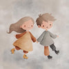 Printable kids poster — Girls dancing together. Cute, soft pastel style for children's rooms and nurseries.