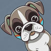 Printable kids poster — Puppy closeup smiling on grey background. Cute, soft pastel style for children's rooms and nurseries.